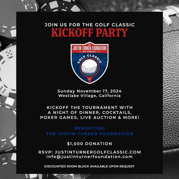 Join us for our biggest event of the year, the 8th Annual Justin Turner Golf Classic. We have sponsorship opportunities available as well as a limited number of golf foursomes.